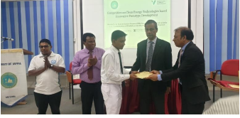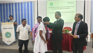 The final event was held on 28-11-2022 from 8.30 am onwards in the Physics mini auditorium, Faculty of Science, University of Jaffna, and all 12 models were displayed. A panel of three judges namely, Prof. R. Srikaran, Prof. K. Vignarooban, and Dr. E. Y. Charles evaluated the models and best three from each set were selected. All the finalists were awarded with medals and certificates, whereas the best selected were awarded with cash prize. All participants were awarded with certificates. The Vice-Chancellor, University of Jaffna, Prof. Dhayalan Velauthapillai (CBERC and HRNCET Project Coordinator/Western Norway University of Applied Sciences), Prof. S. N. Surendran (Director/Centre for Science Education), Prof. P. Ravirajan (Dean/Faculty of Science and CBERC and HRNCET Project Coordinator), and Mr. S. Anurakavan (UBL Manager) were participated as the special guests in the event. Dr. (Ms.) S. Yohi, Department of Chemistry, coordinated the competition. The event was highly appreciated by the participants.