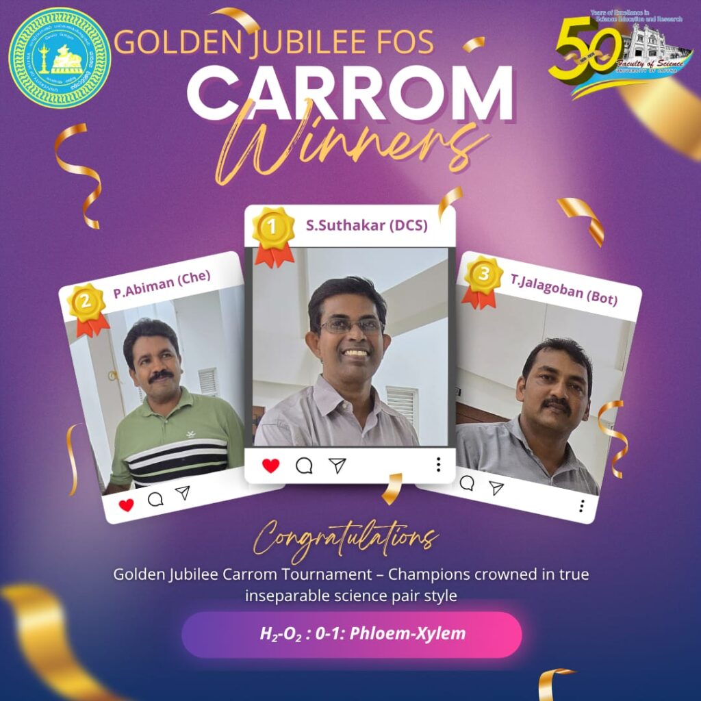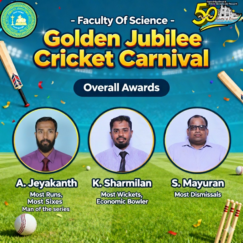 To commemorate fifty years of Excellence in Science Education and Research, the Faculty’s community/stakeholders — including staff, students, their societies, and alumni associations — have organised a range of celebratory activities. These include the VINGNANAM Research Conference, the Golden Jubilee Celestia Awards Ceremony, STEM education outreach programmes, various sports tournaments, and e-resource development competitions. Furthermore, the Faculty of Science Alumni Association hosted a grand celebration to honour long-serving staff members, bringing together alumni from across the country and around the world, along with current faculty members and distinguished guests.