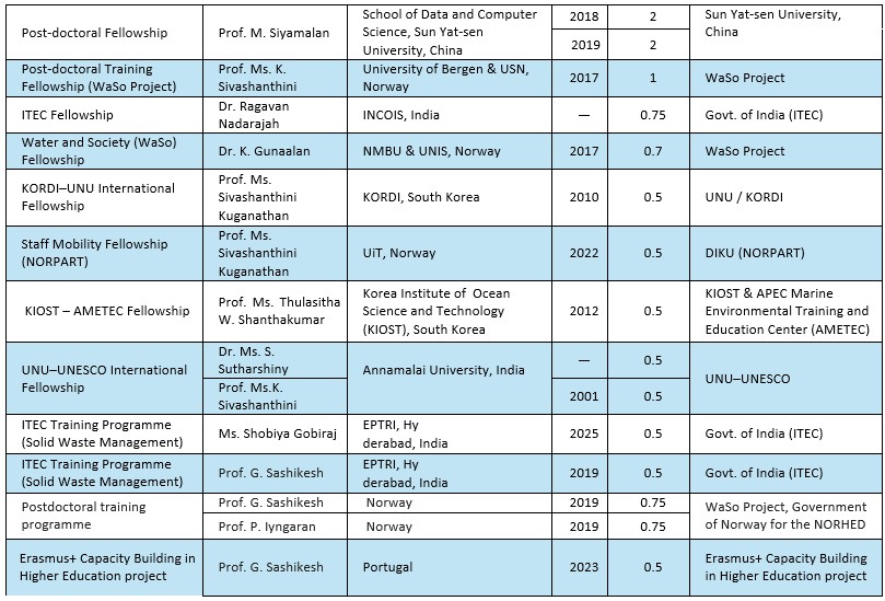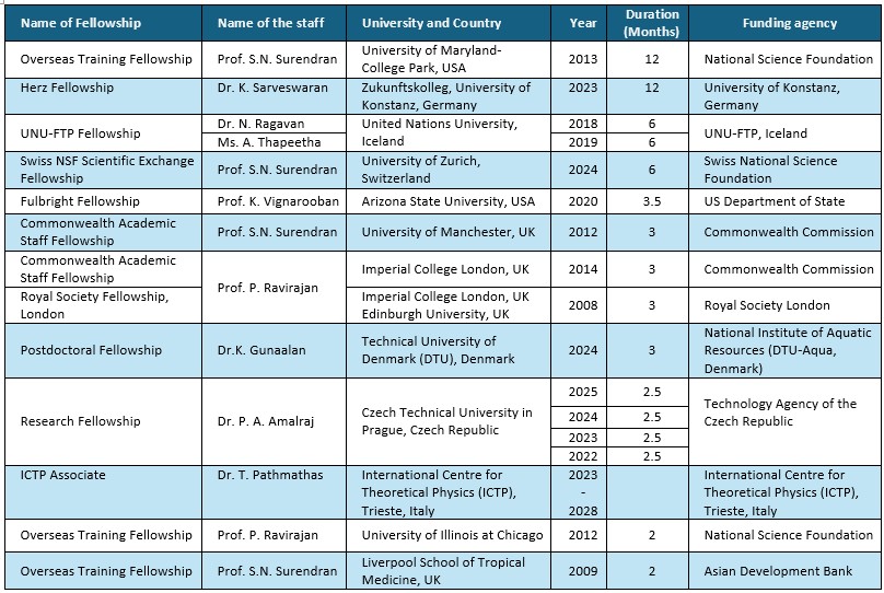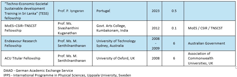 Dr. S. Mahesan | Academic Fellow | University of Wales UK | 1999 – 2000 | 12 | Commonwealth Fellowship |