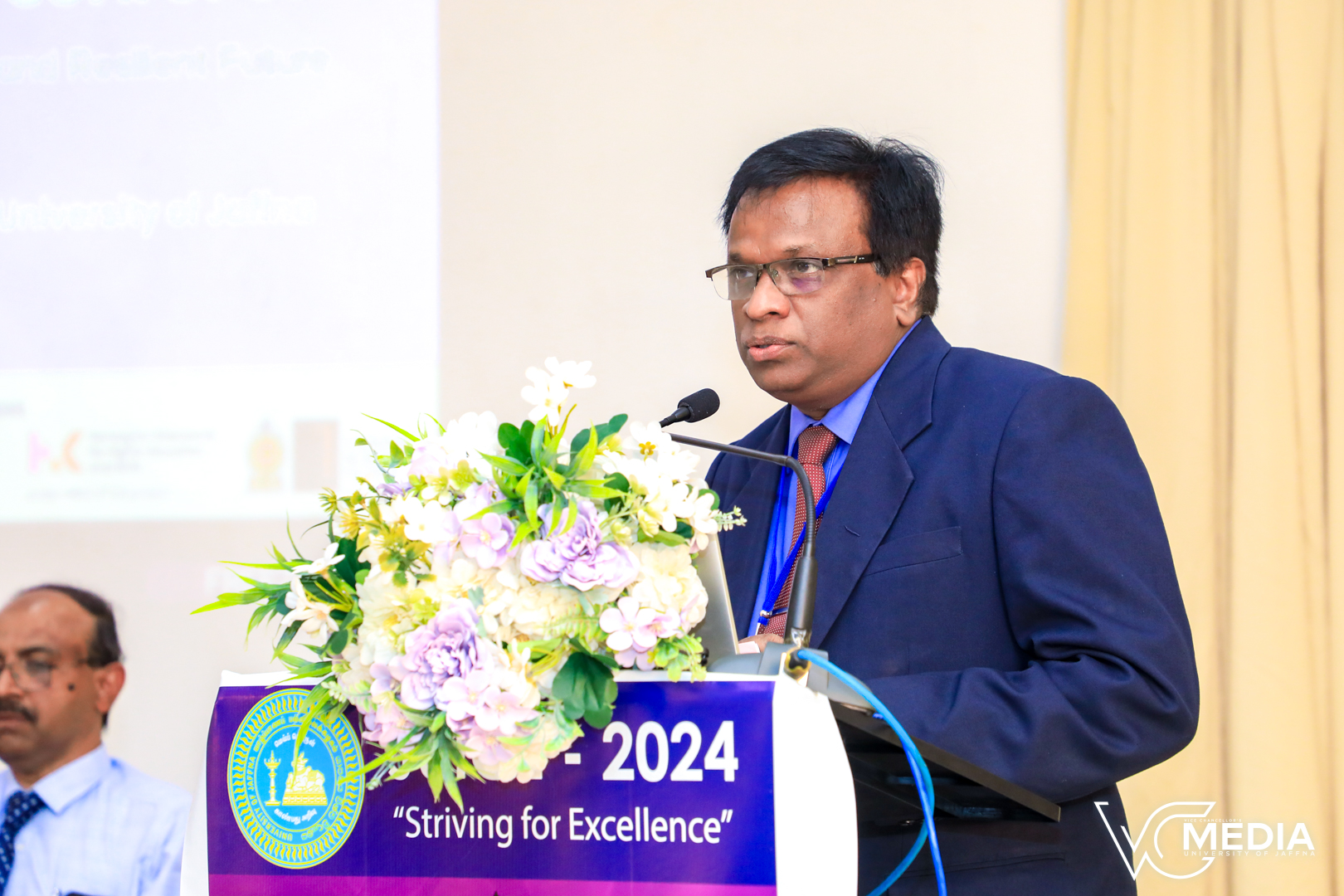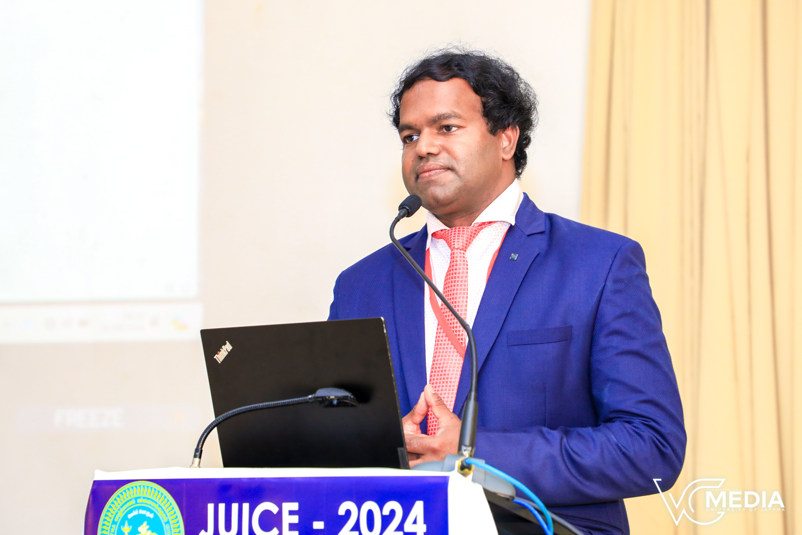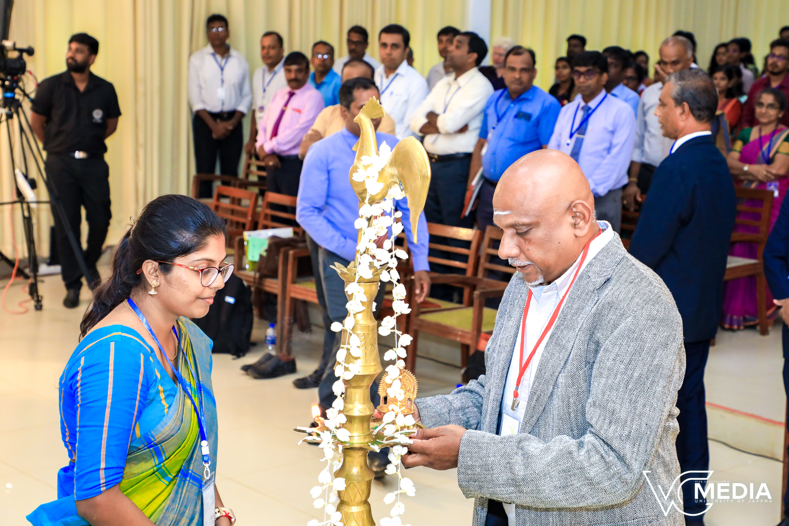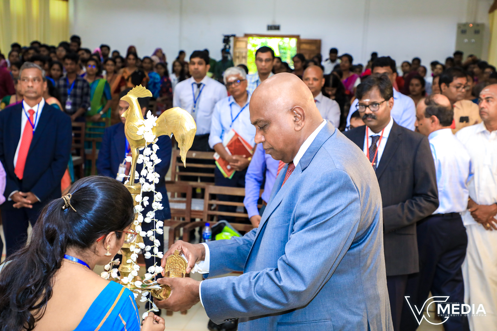 The conference commenced at the University Library Auditorium with a traditional oil lamp lighting ceremony, setting a solemn and auspicious tone for the event. This was followed by the inaugural session featuring inspiring addresses from distinguished personalities. Prof. S. N. Surendran, Conference Chair of VRC 2024; Prof. P. Ravirajan, Dean of the Faculty of Science and General Chair of VRC 2024; and Prof. S. Srisatkunarajah, Vice-Chancellor of the University of Jaffna and General Chair of JUICE 2024, each shared valuable insights on the significance of the conference theme.