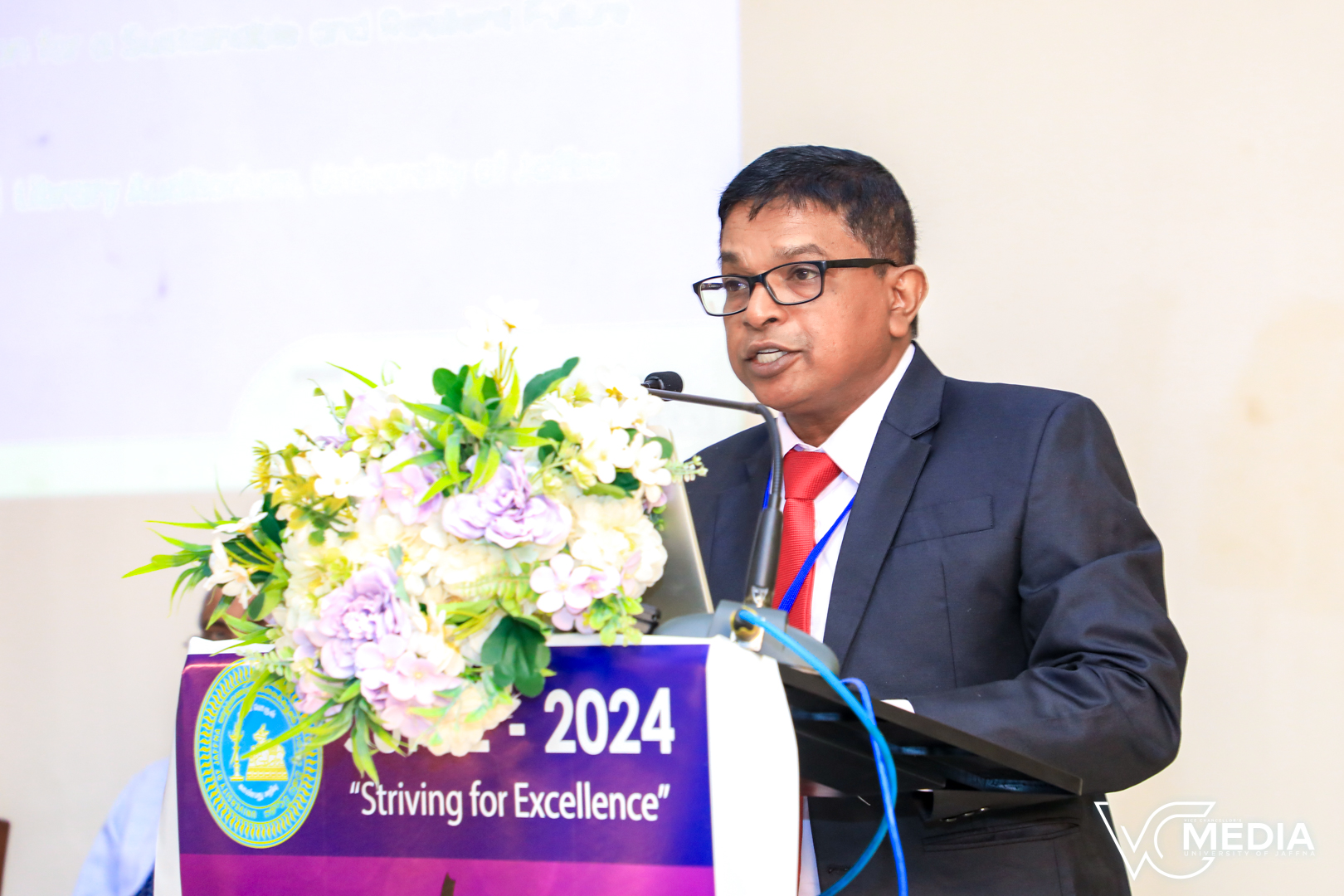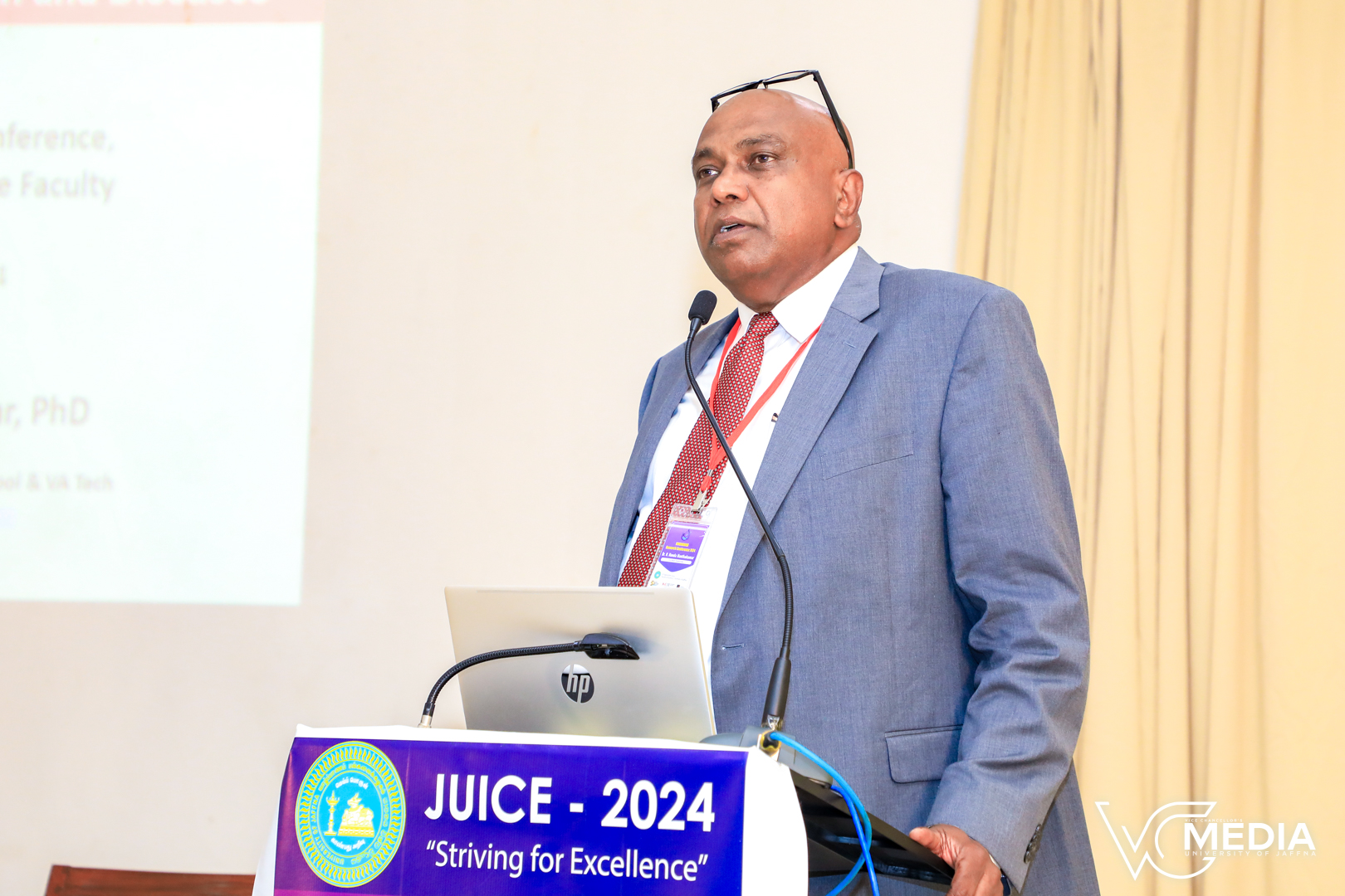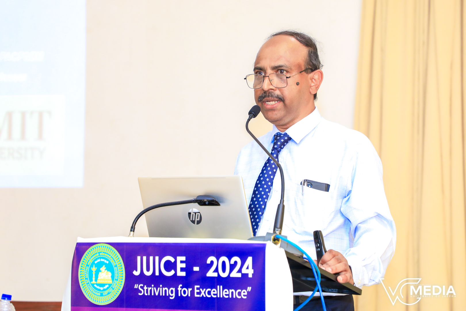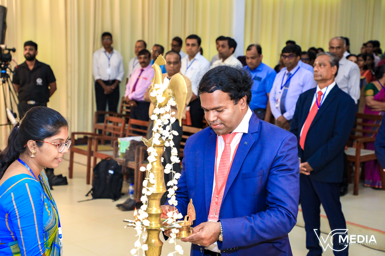 The conference commenced at the University Library Auditorium with a traditional oil lamp lighting ceremony, setting a solemn and auspicious tone for the event. This was followed by the inaugural session featuring inspiring addresses from distinguished personalities. Prof. S. N. Surendran, Conference Chair of VRC 2024; Prof. P. Ravirajan, Dean of the Faculty of Science and General Chair of VRC 2024; and Prof. S. Srisatkunarajah, Vice-Chancellor of the University of Jaffna and General Chair of JUICE 2024, each shared valuable insights on the significance of the conference theme.