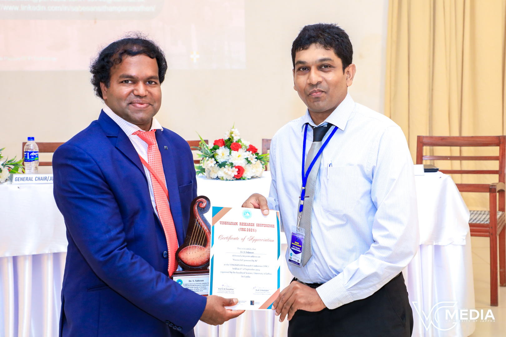 The keynote addresses and invited talks at the VINGNANAM Research Conference spanned a wide range of topics, showcasing the diversity and depth of scientific research. Dr. S. Shutthanandan, Senior Research Scientist at Pacific Northwest National Laboratory and Research Professor in the Department of Aerospace and Mechanical Engineering, University of Texas at El Paso, USA, delivered a keynote on “Precision Imaging and Irradiation – Advances in Helium Ion Microscopy for Scientific Research,” highlighting cutting-edge advancements in imaging technology. Dr. S. Sabesan, Founder and President of Pervas ID and Fellow at Girton College, University of Cambridge, UK, presented on “Passive IoT powered by AI,” offering valuable insights into the convergence of artificial intelligence and the Internet of Things. The two keynote sessions were chaired by Prof. K. Vignarooban from the Department of Physics and Prof. M. Siyamalan from the Department of Computer Science.