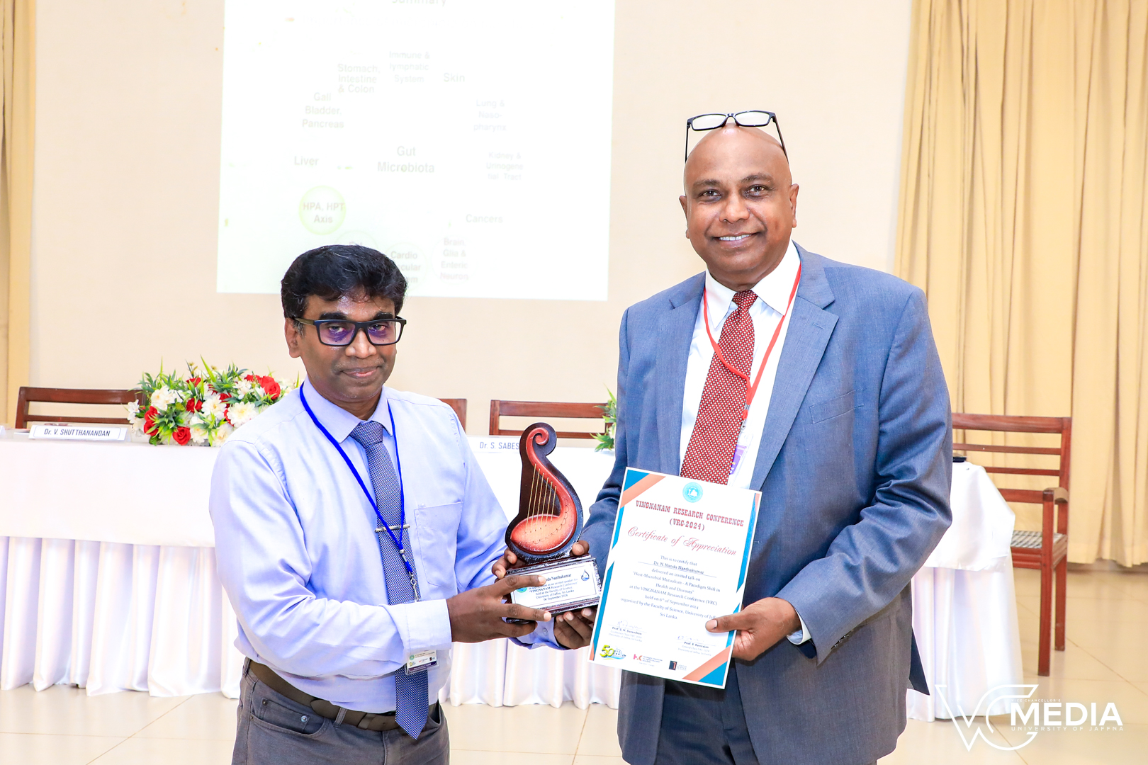 The invited talks were equally engaging. Dr. N. Nanda Nanthakumar, Chief Scientific Officer at A9 Health Inc., USA, explored “Host-Microbial Mutualism – A Paradigm Shift in Health and Diseases.” Dr. Sarasanandarajah Sivananthan, Senior Scientist at Peter MacCallum Cancer Centre and Adjunct Associate Professor at RMIT University, Australia, discussed “Optical Fluorescence Imaging Characterization of Tissues/Cells using Unsupervised Machine Learning Techniques,” highlighting the pivotal role of machine learning in biological imaging. Dr. Thayasivam Uthayasanker, Senior Lecturer at the Department of Computer Science & Engineering, University of Moratuwa, presented on “From Metrics to Mastery: Comprehensive ML Model Evaluation,” emphasizing the importance of a holistic approach to evaluating machine learning models. The invited sessions were moderated by Prof. T. Eswaramohan from the Department of Zoology, Prof. M. Senthilnanthanan from the Department of Chemistry, and Dr (Ms). B. Mayurathan from the Department of Computer Science.